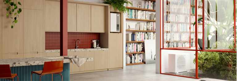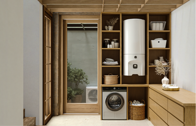 Aerolia Duo Aerolia Duo es la aerotermia con depósito de ACS integrado cuya unidad interior se puede instalar de forma mural, liberando un valioso espacio debajo de la bomba de calor.